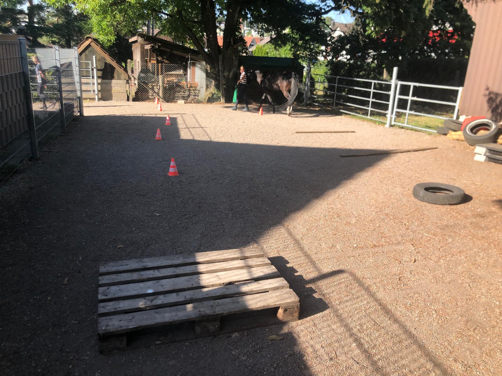 Neben der Weide und den langen Ausritten bekommen die Pferde hier zusätzlich etwas gemeinsamen Auslauf. Auf dem Sandplatz arbeiten wir aber auch regelmässig an der Technik von Pferd und Reiterin. Nach dem Reitlager bietet uns der Platz eine grossartige Bühne für unsere gut besuchte, beliebte Lager-Abschlussvorführung.