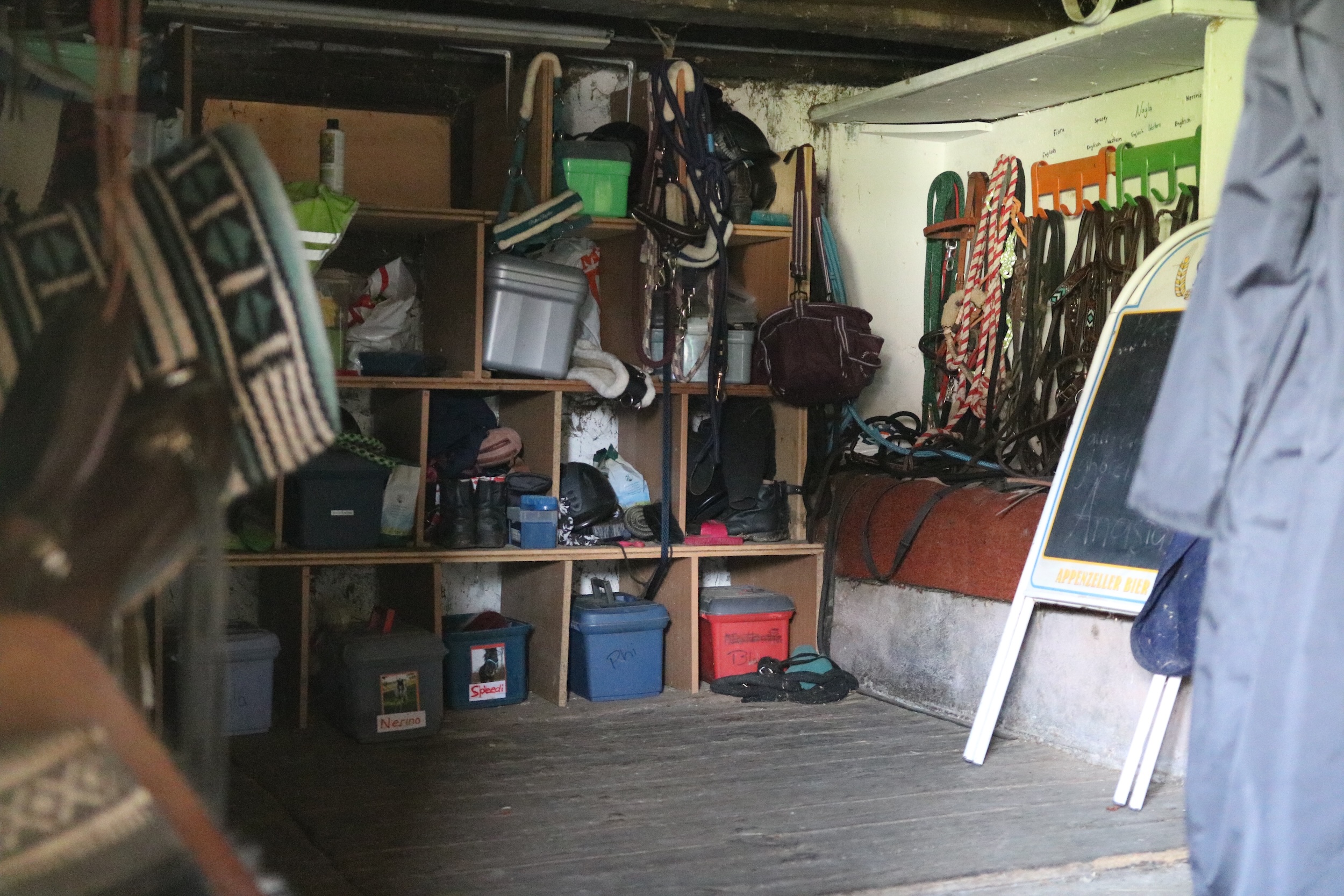 Hier werden nicht nur unsere Sättel, Putzzeug und Kraftfutter gelagert, es ist ein Mittelpunkt unseres Reithofs und hier wurden am kleinen Tisch schon lange Gespräche geführt, in der Mittwochsgruppe Sirup getrunken und zusammen die eine oder andere Pizza gegessen.